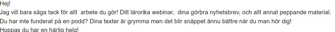 Sen får man vara beredd på att sanningen inte alltid är bekväm men kan vara nödvändig för att nå förändring. O det är något jag haft stor glädje av.”