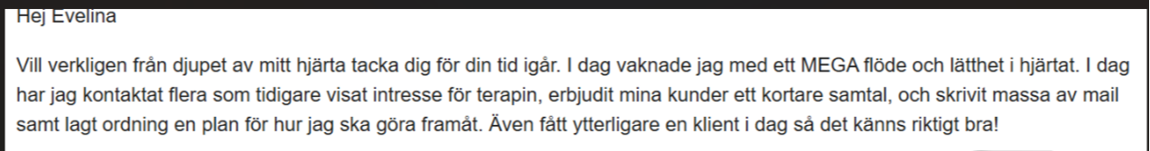 Tack Evelina för din hjÀlp! Efter vÄrat samarbete sÄ kÀnde jag mig mycket sÀkrare och jag skickade precis ivÀg det största erbjudandet jag nÄgonsin gjort och det kÀndes SÄÄ bra! NÄgot som jag för nÄgra mÄnader sen bara kunde drömma om!????