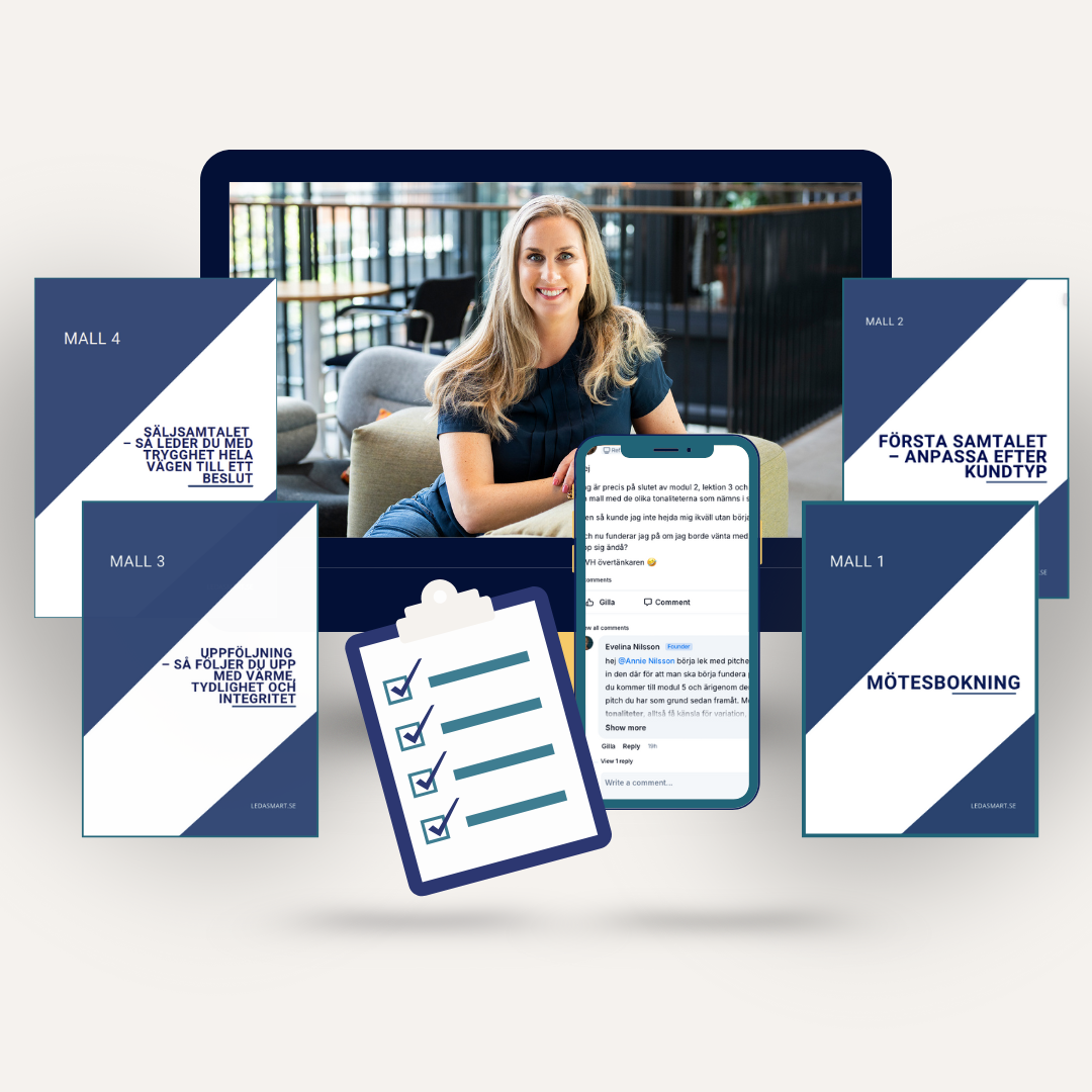 PĂ„ bara tre veckor fĂ„r du fokus, konkreta uppgifter och mallar som gör det enkelt att börja sĂ€lja â utan övervĂ€ldigande kursmaterial.